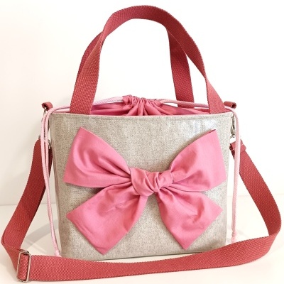 Lancheira térmica linho cinza com brilhos prateados + algodão rosa velho + alças rosa velho