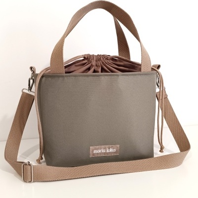 A parte de cima que fecha a lancheira é em algodão, sendo maleável, permite encher bem até ao topo.